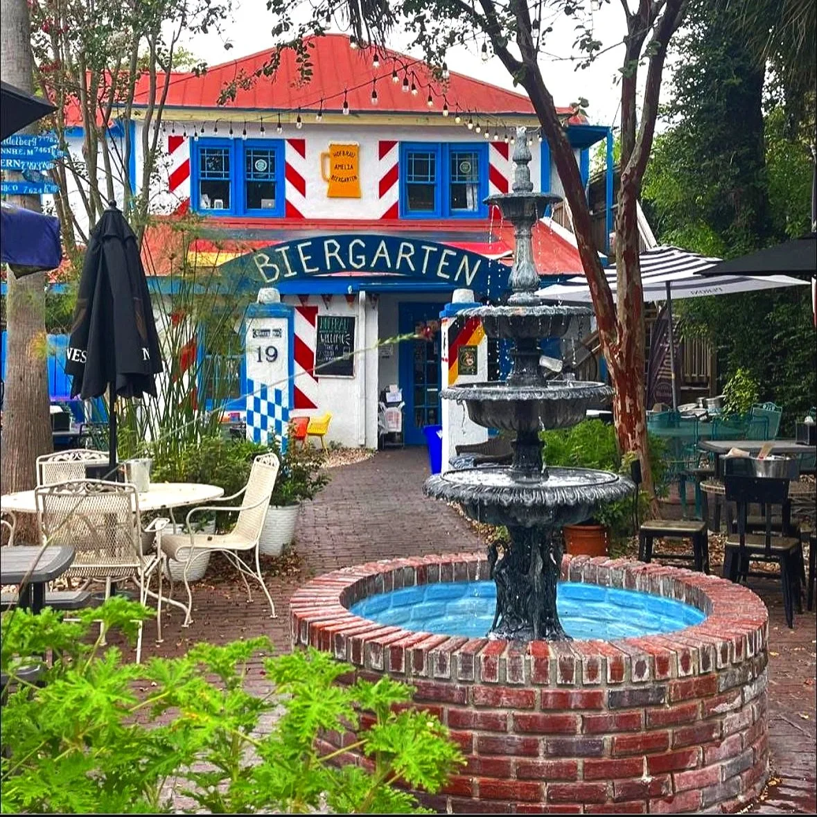 “…This small little beer garden that is nestled downtown Fernandina is a hidden gem. The atmosphere is fantastic and the decor is perfect for a relaxed Bavarian Style experience…” -Mitchell P.
